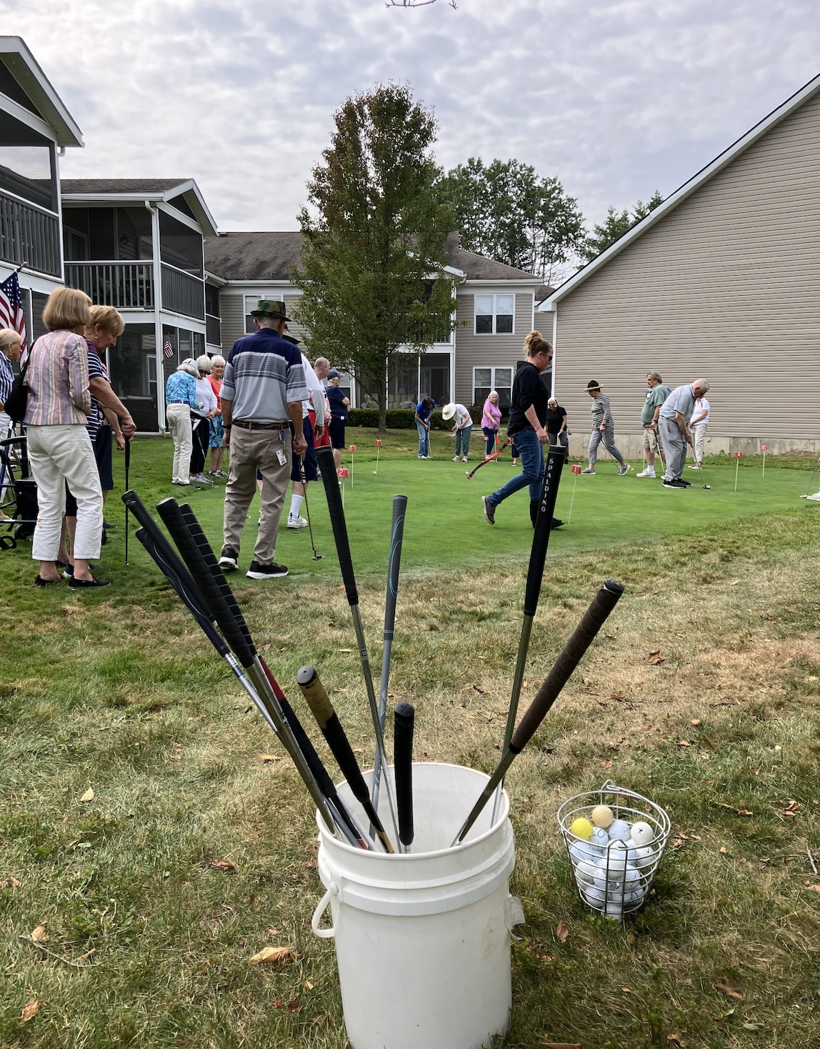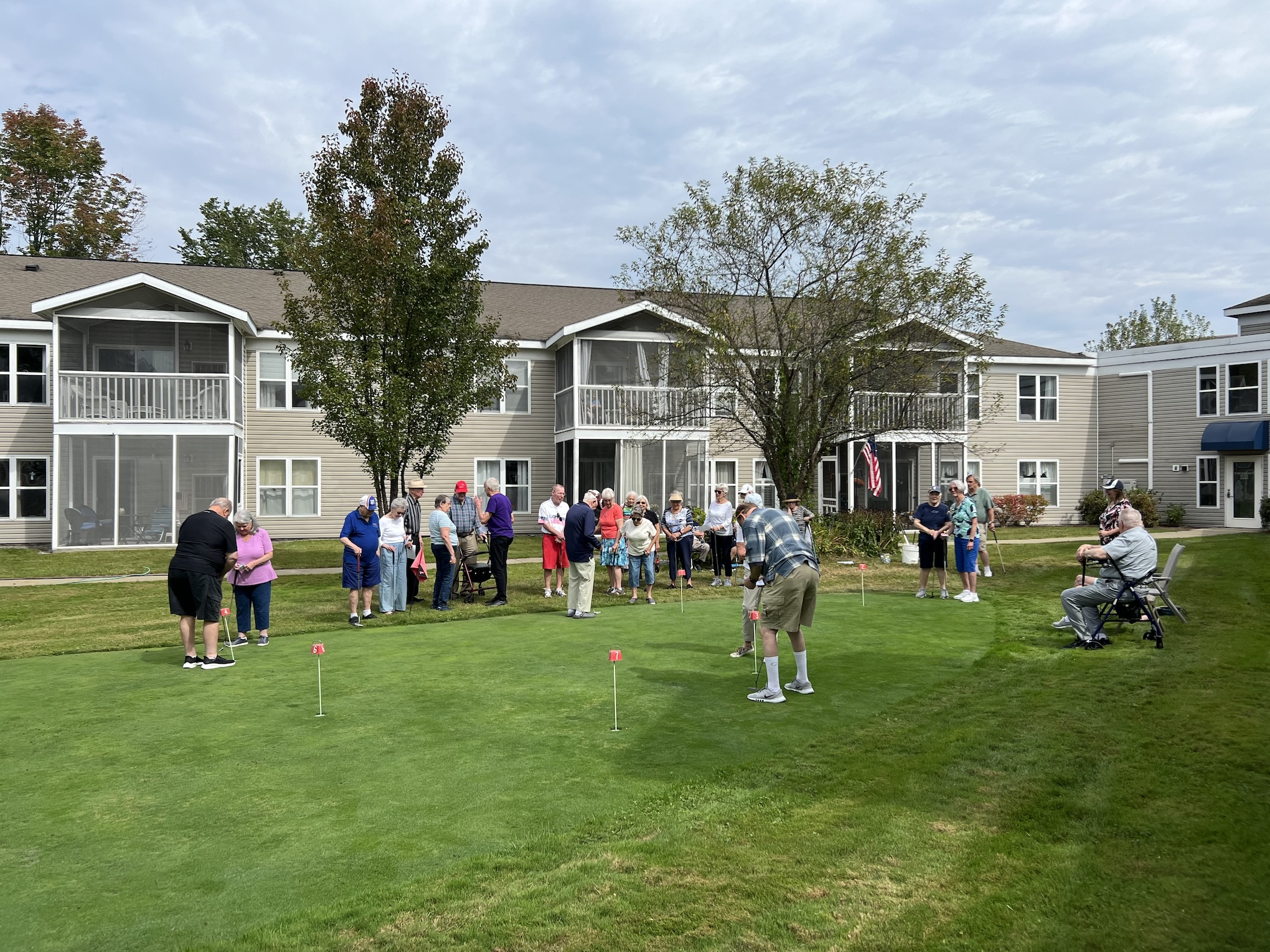 Residents who participated in the 2024 Putting Classic Season, were practicing for the final attempts to determine who would be the champions. They compete against each other in pairs through out the summer. Once the champions and runner up are named with the lowest scores overall, they will have a dinner celebration. The day was perfect, slightly overcast, cool temperatures and even mother nature put on a show with the ocean like rippling clouds. There was much laughter and cheer to go around as the teams shot their final scores. This activity is always a favorite of the residents. It is a time to relax, get to know new people and simply enjoy the grounds of Prestwick Chase. Thank you to all the players and community for coming out to cheer for the players as they conclude the 2024 tournament. Could not have asked for a better day!